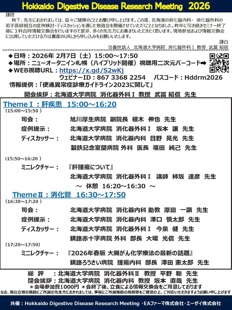 Hokkaido Digestive Disease Research Meeting 2026のご案内(R8.2.7)