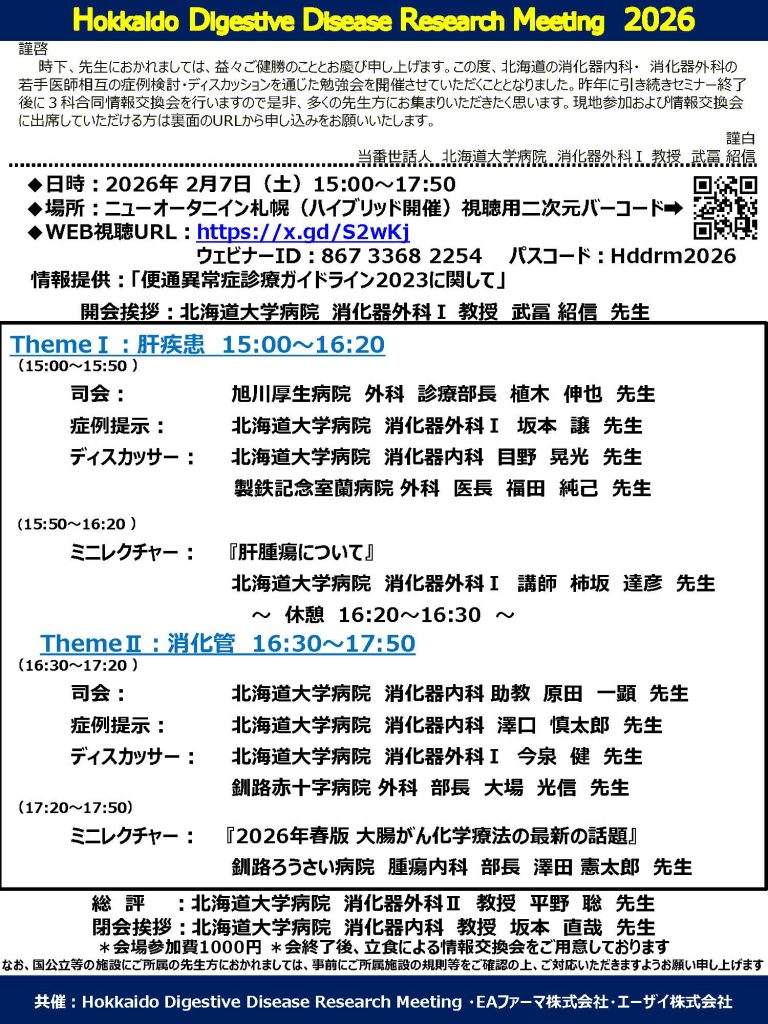 Hokkaido Digestive Disease Research Meeting 2026のご案内(R8.2.7)